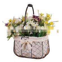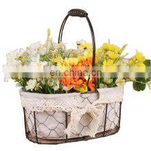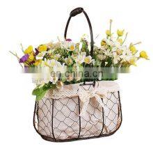 Wholesale Customize Home Decor Picnic Oval Dark Brown Metal Wire Fabric Food Fruit Garden Storage Flower Basket With Handles Flower Vase