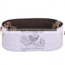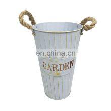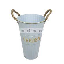 New Design Wholesale Home Decor Floor Garden Waterproof Plants Antique White Metal Stand Painting Flower Pots With Hemp Handle Flower Vase