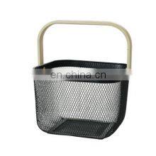 New Manufacture Hot Selling Popular Metal Wire Iron Black Picnic Fruit Basket With Wood Handle Kitchen Home Storage Basket