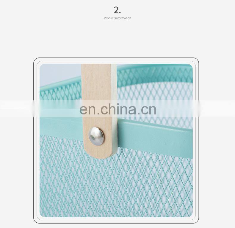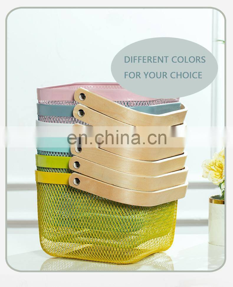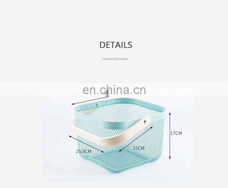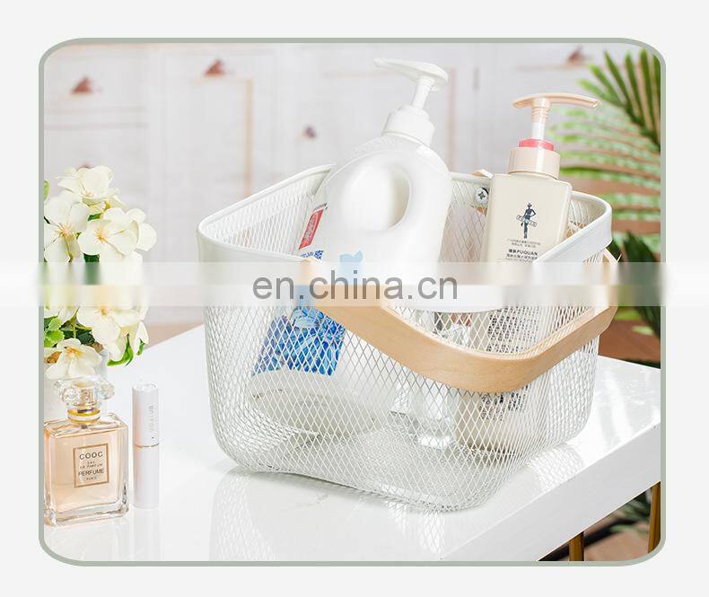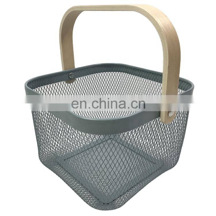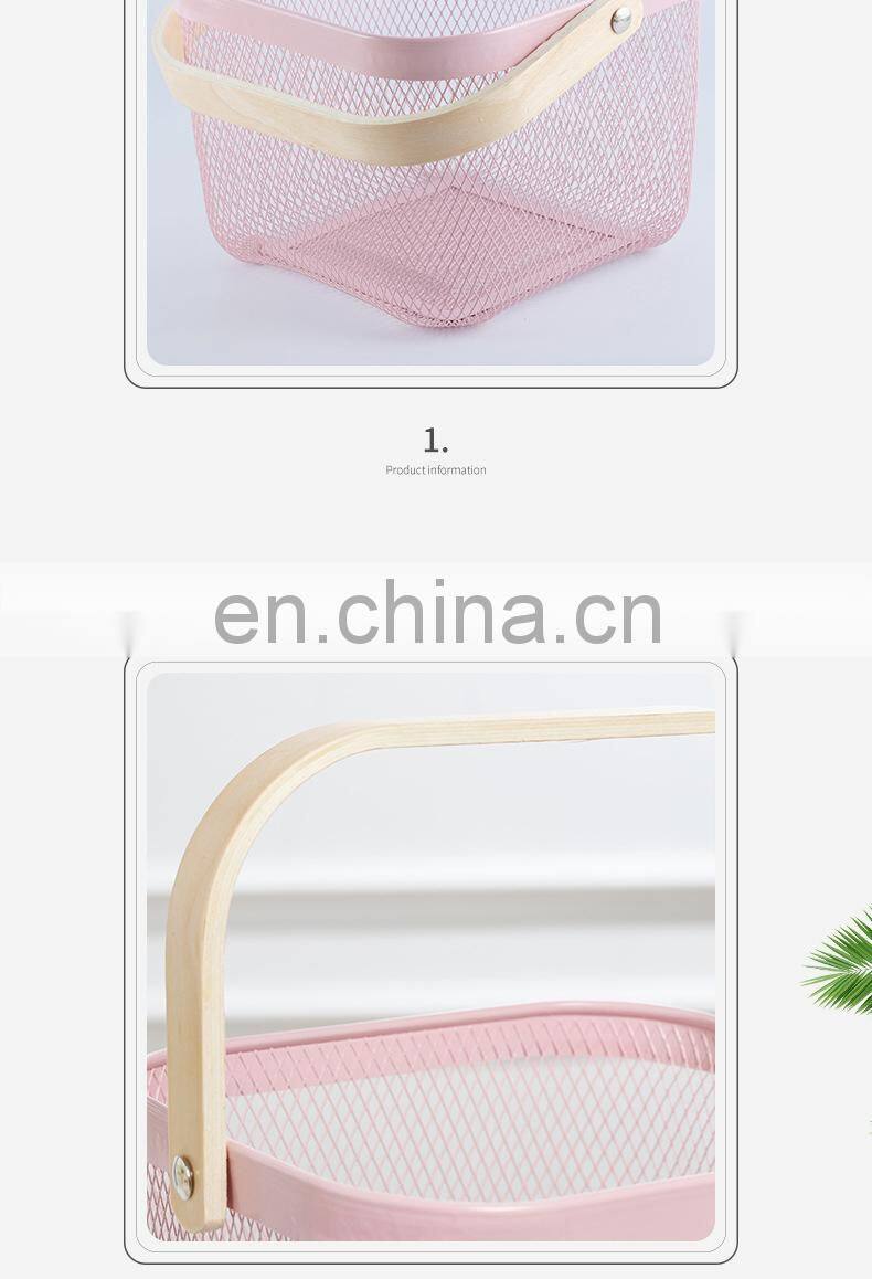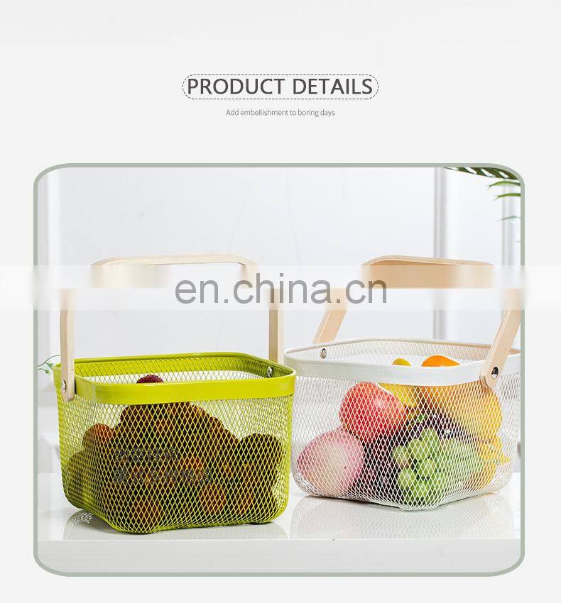 New Manufacture Hot Selling Popular Metal Wire Iron Big Size Picnic Fruit Basket White With Wood Handle Kitchen Home Storage