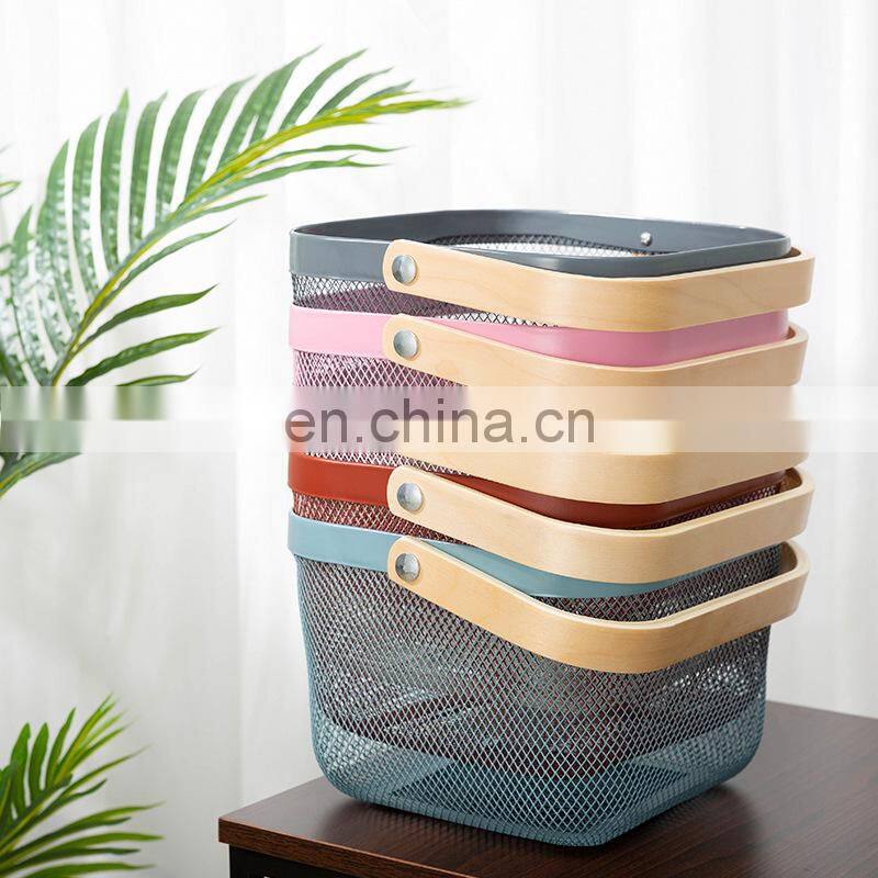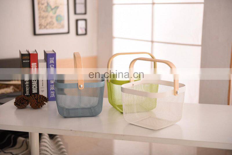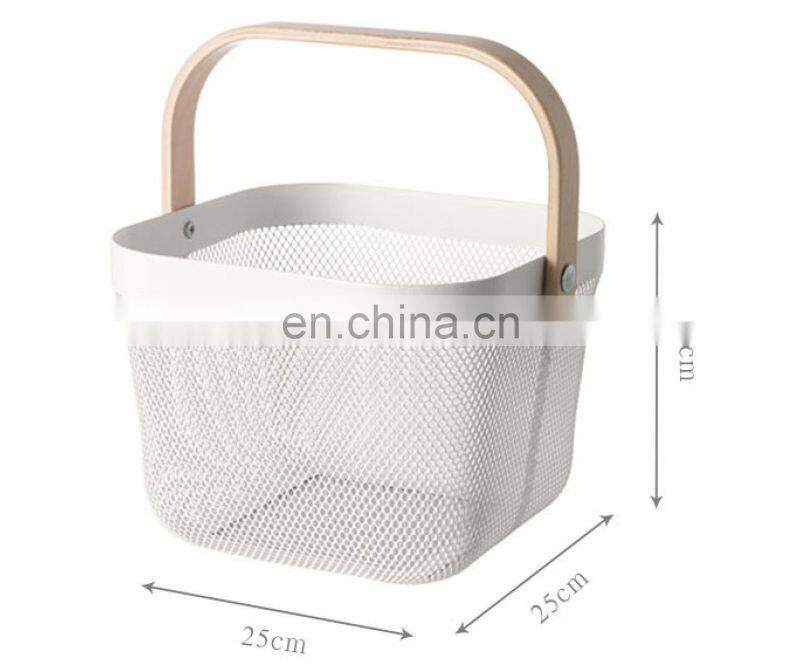 New Manufacture Hot Selling Popular Metal WireIron Big Size White Picnic Fruit Basket With Wood Handle Home Kitchen Storage