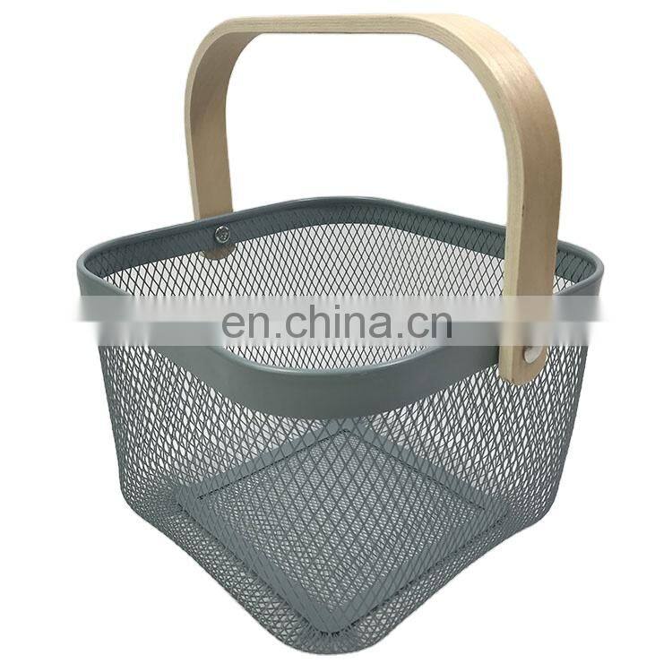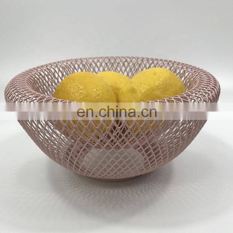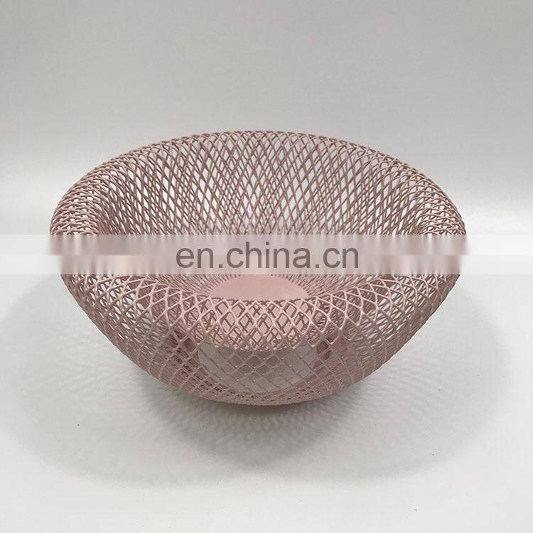 Manufacture Popular Kitchen Living Home Decor Picnic Food Fruit Storage Iron Small Size Round Color Pink Metal Wire Fruit Basket