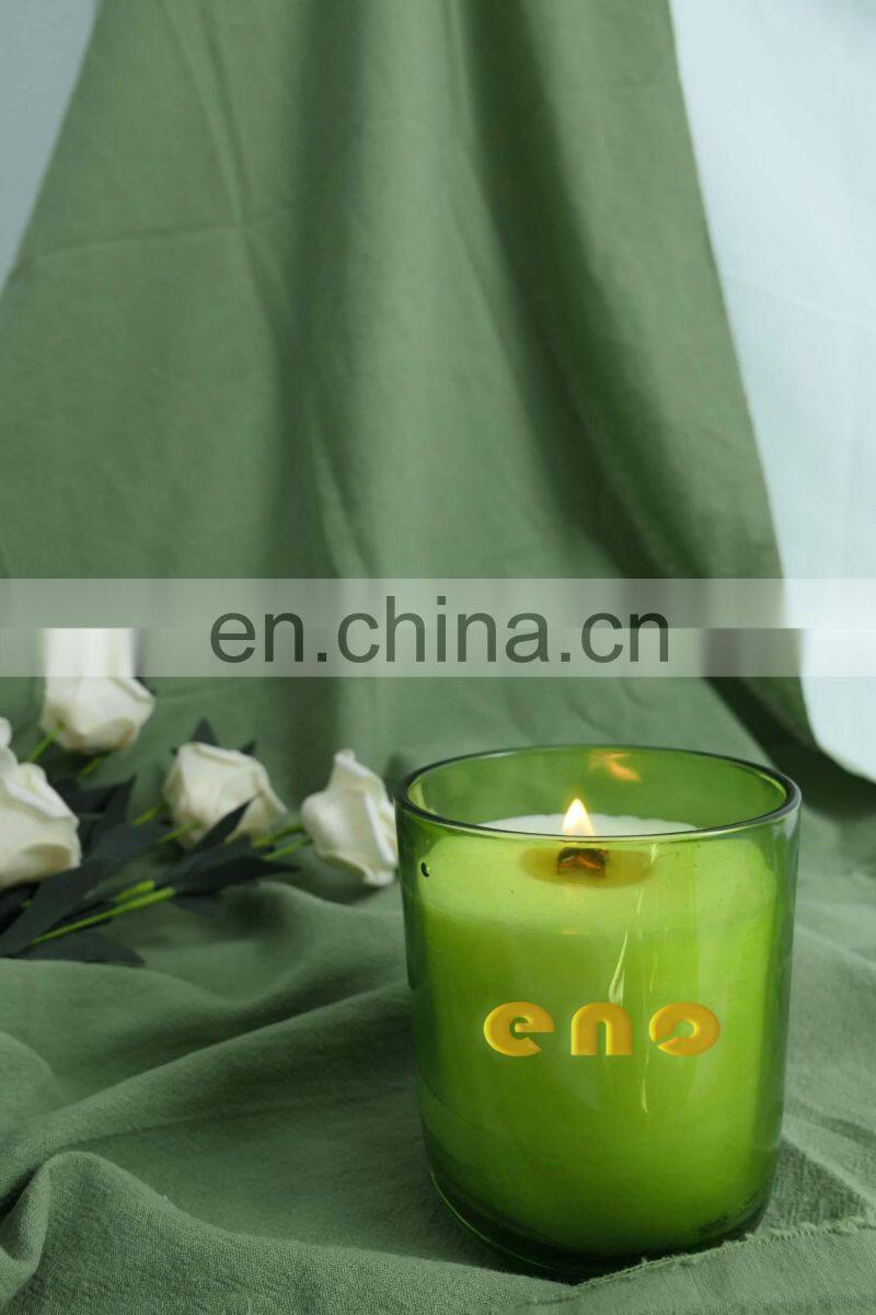 Custom Logo Golden Glass Scented Candle Smokeless Handmade Soy Wax Wedding Hand Gift Box Scented Candle
