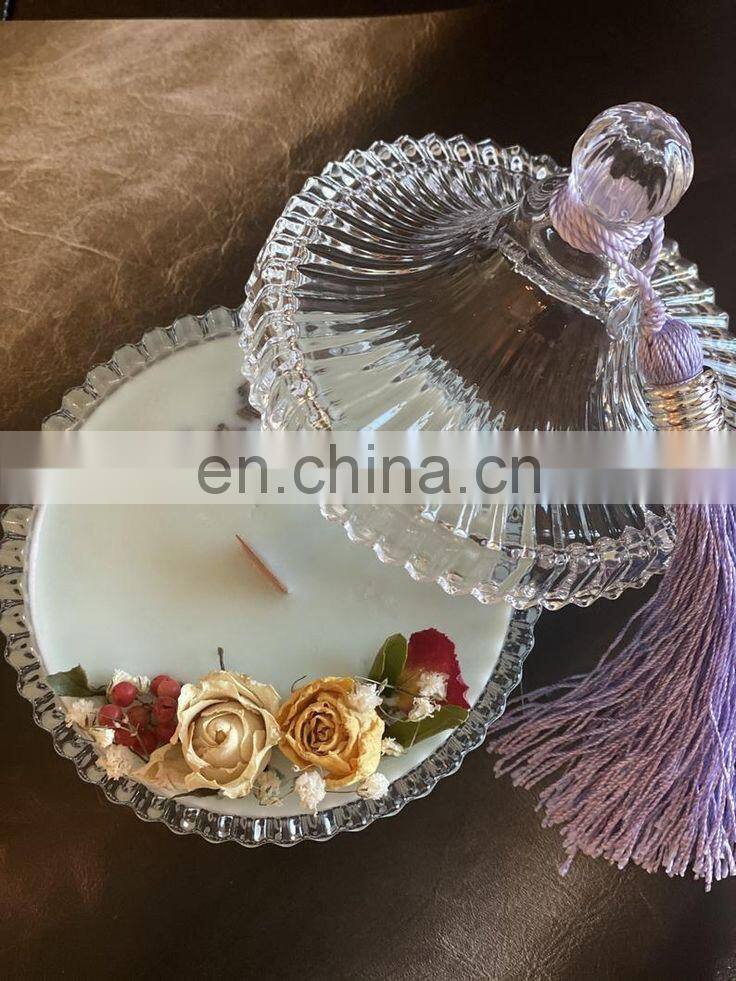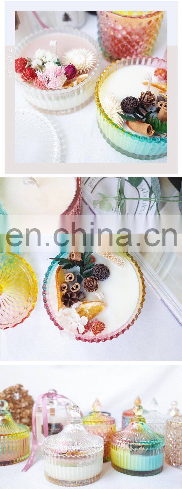 Private Label Custom Home Decoration Healing Crystal Used Luxury Glass Candle Jars Soy Wax Scented Candles With Lid