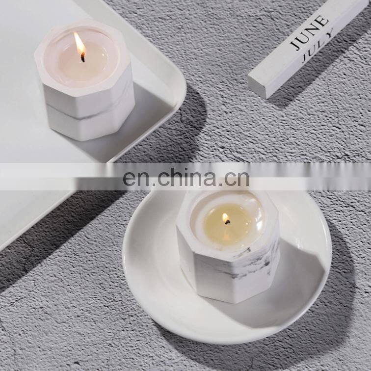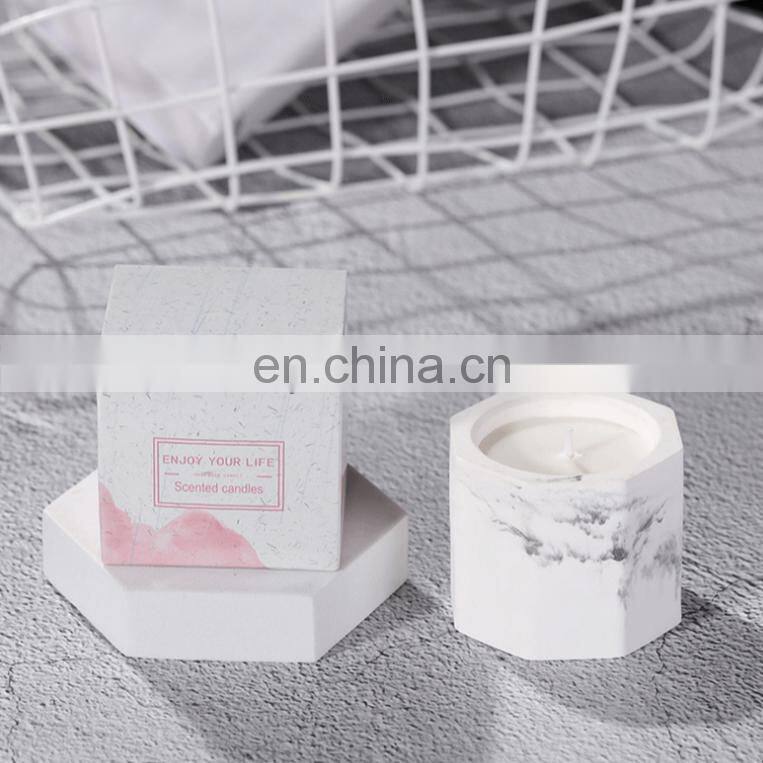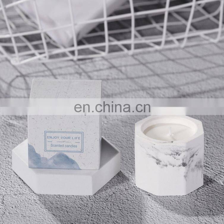 White label hexagon centerpiece personalized aromatic canisters clay marble candle gift box packaging