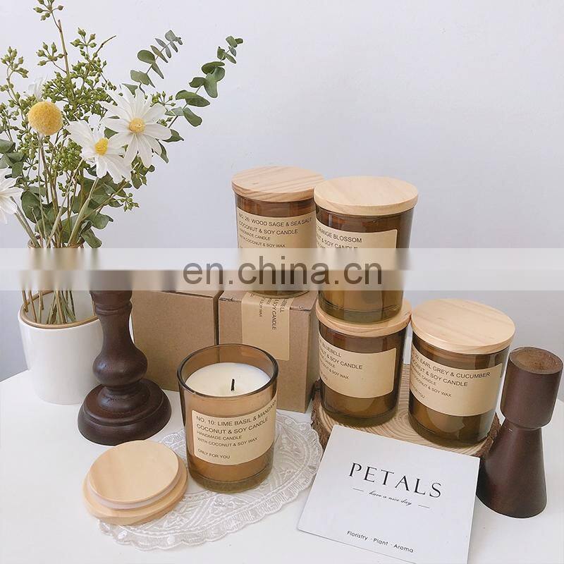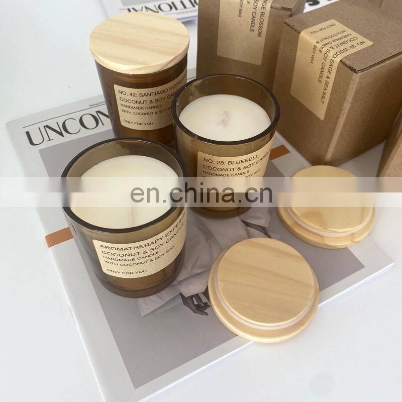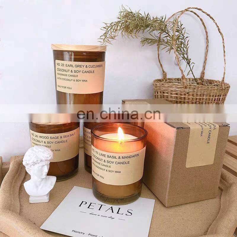 Classical Vintage Custom Label Soy Wax Essence Fragrance Oil Brown Apothecary Glass Amber Jar Gift Boxes Candles
