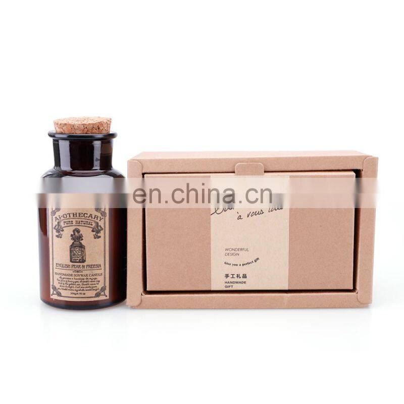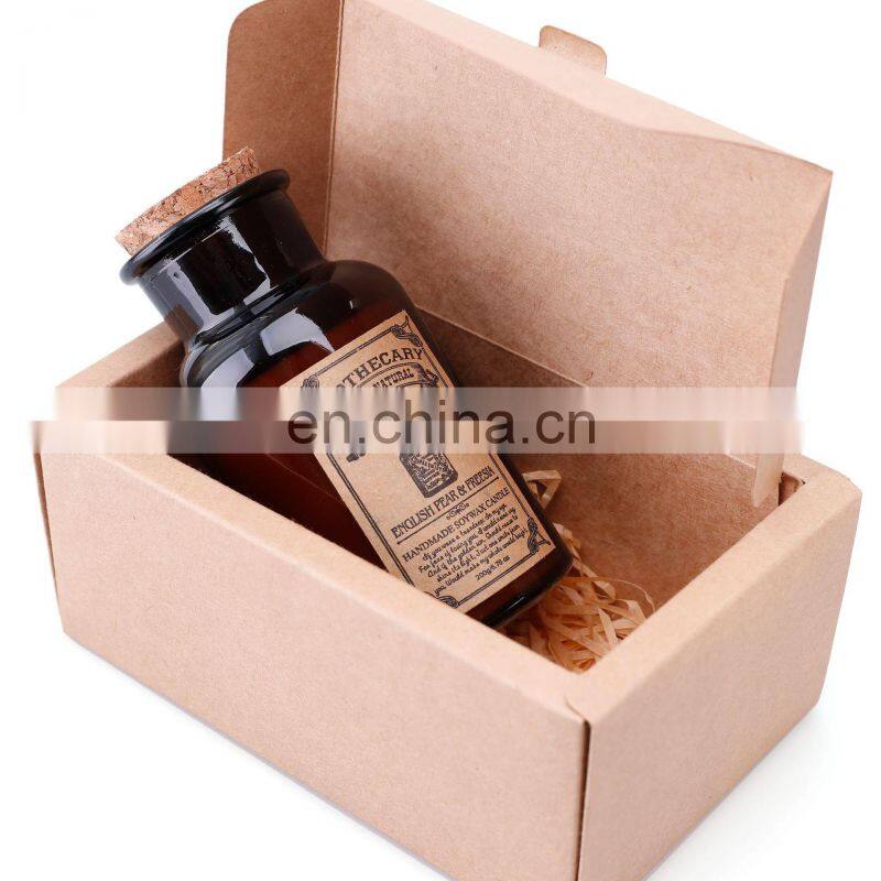 Classical Vintage Custom Label Soy Wax Essence Fragrance Oil Brown Apothecary Glass Amber Jar Gift Boxes Candles