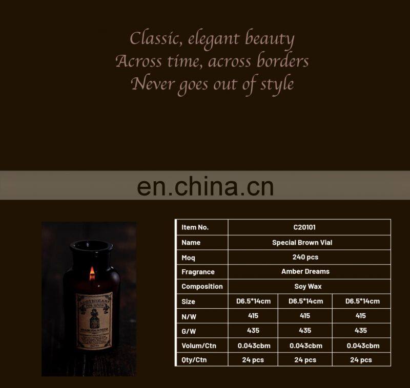 Home > Products > ENO Scented Candles > Classical Vintage Custom Label Soy Wax Essence Fragrance Oil Brown Apothecary Glass Amber Jar Gift Boxes Candles