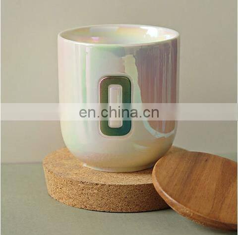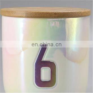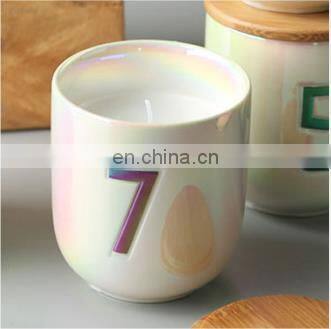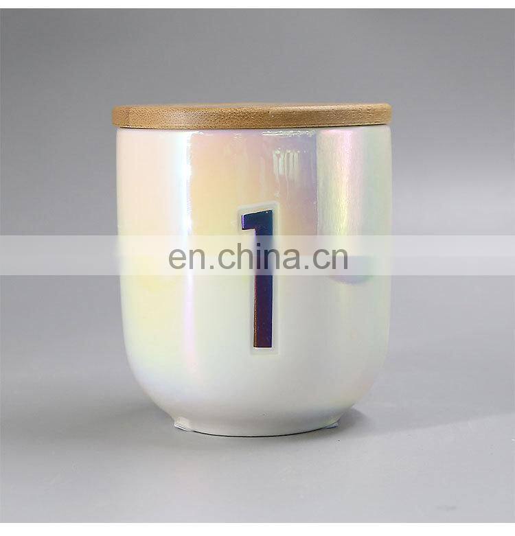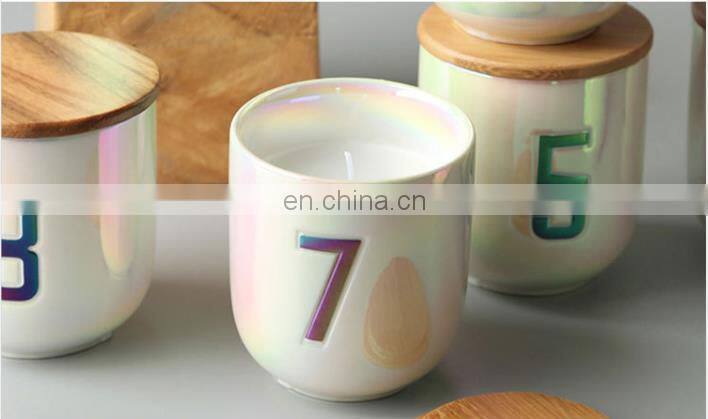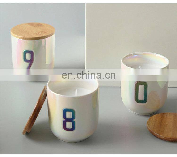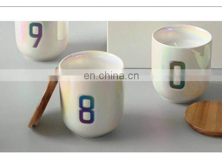 INS Minimalism Style Aromatherapy Candle Customized Wax With Wooden Lid Digital Ceramic Jar Electroplating Scented Candle