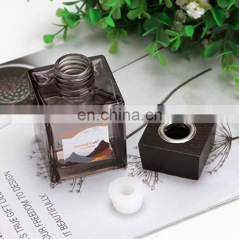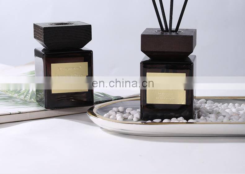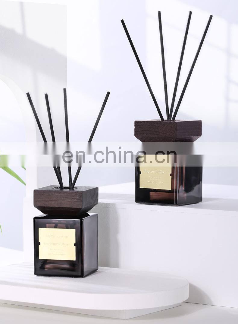 Luxury Hotel Customize Flameless Perfume Oil Fragrance Fiber Rattan Stick Glass Bottle Wood Lid Cover Reed Diffuser For Home