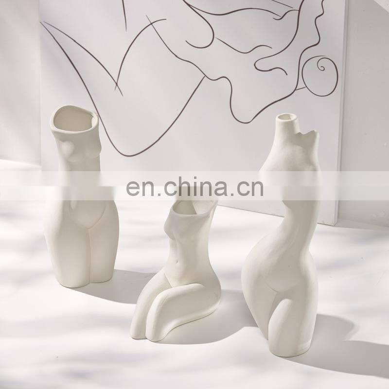 2021 Handmade Nordic White Abstract Minimalist Home Decor Accessories Ceramic Female Body Flower Vase