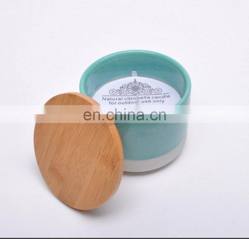 Hot Sale Good Quality Blue Ceramics Candle Cans Private Label Empty Home Scented Candle Jars Luxury With Wood Lid