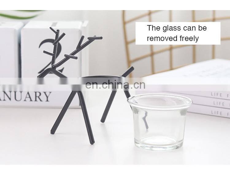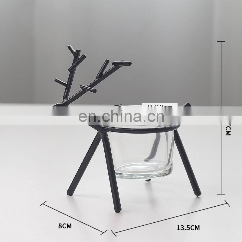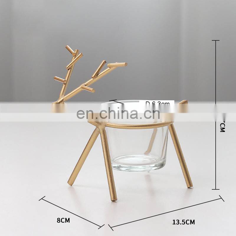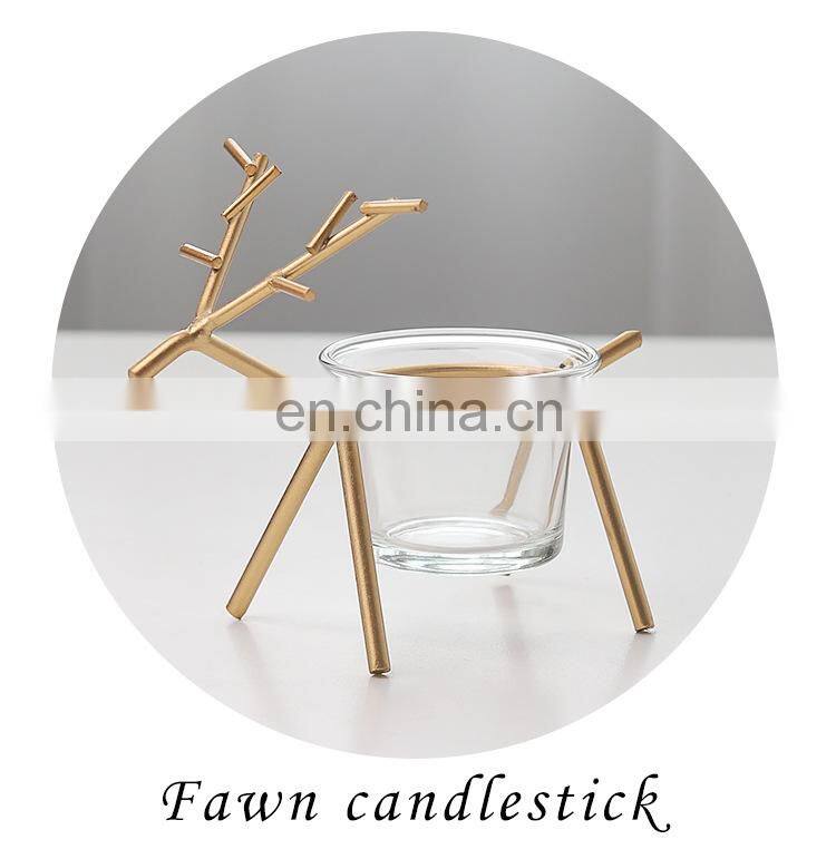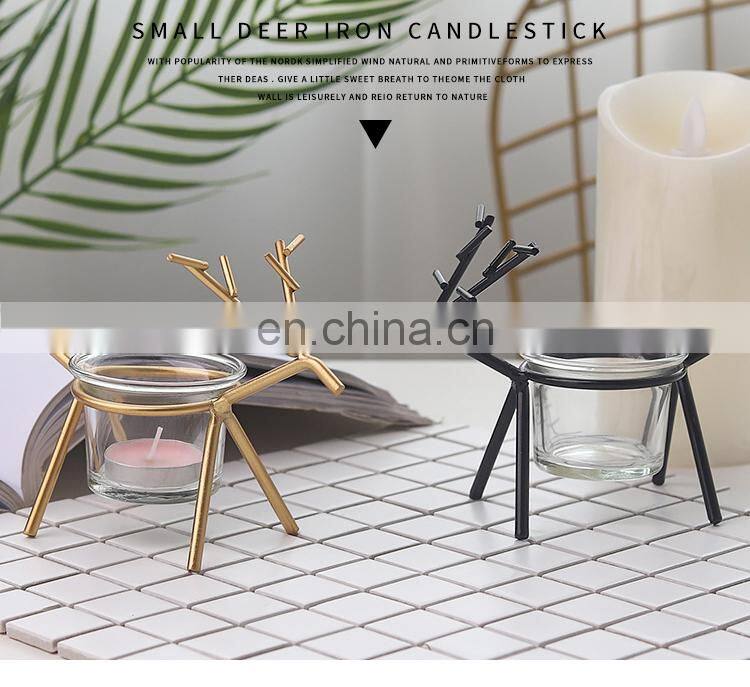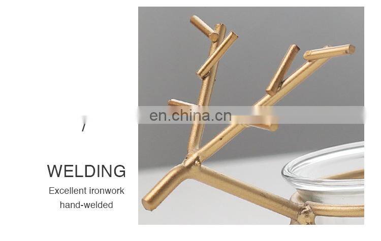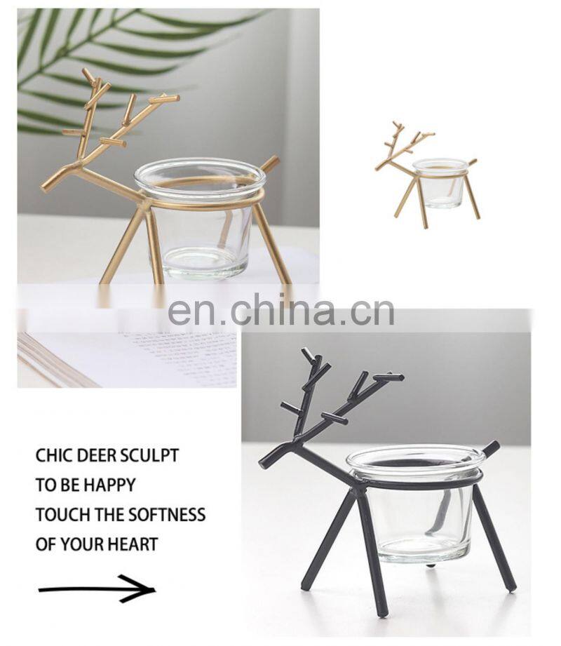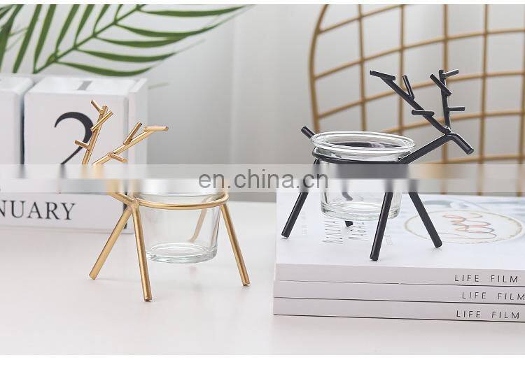 Fawn Bulk Black Gold Geometric Wedding Metal Glass Home Decor Candles Holder