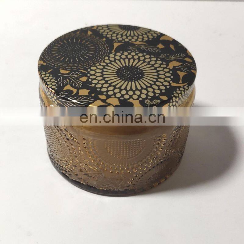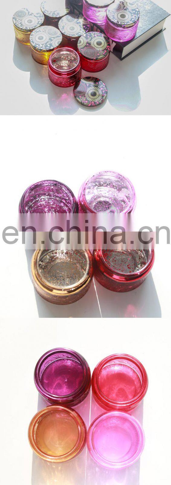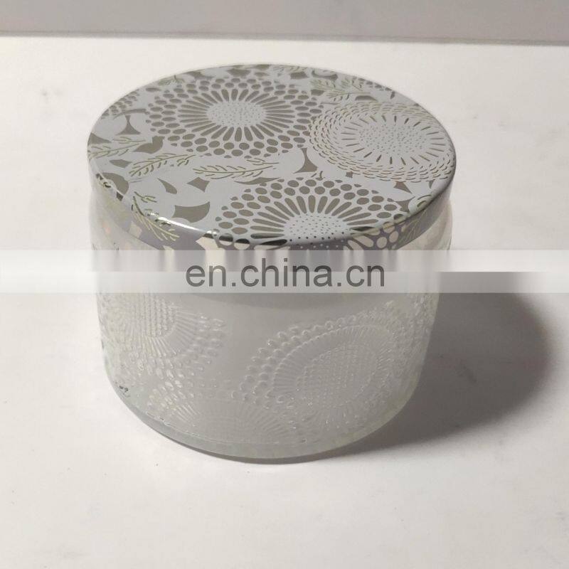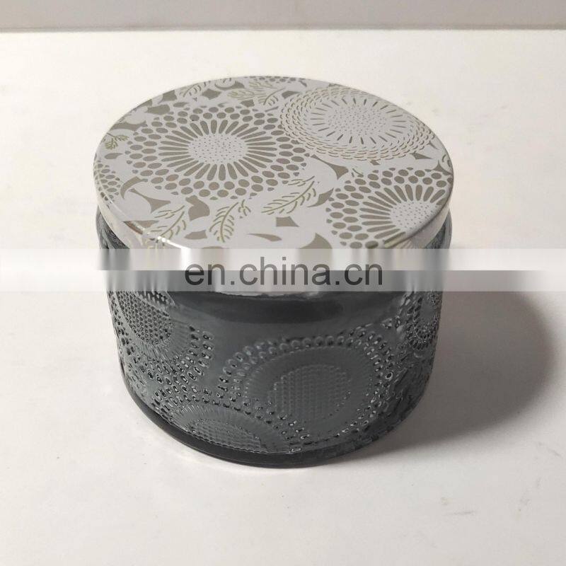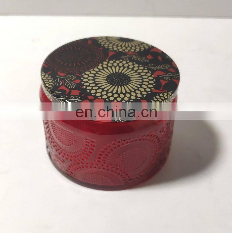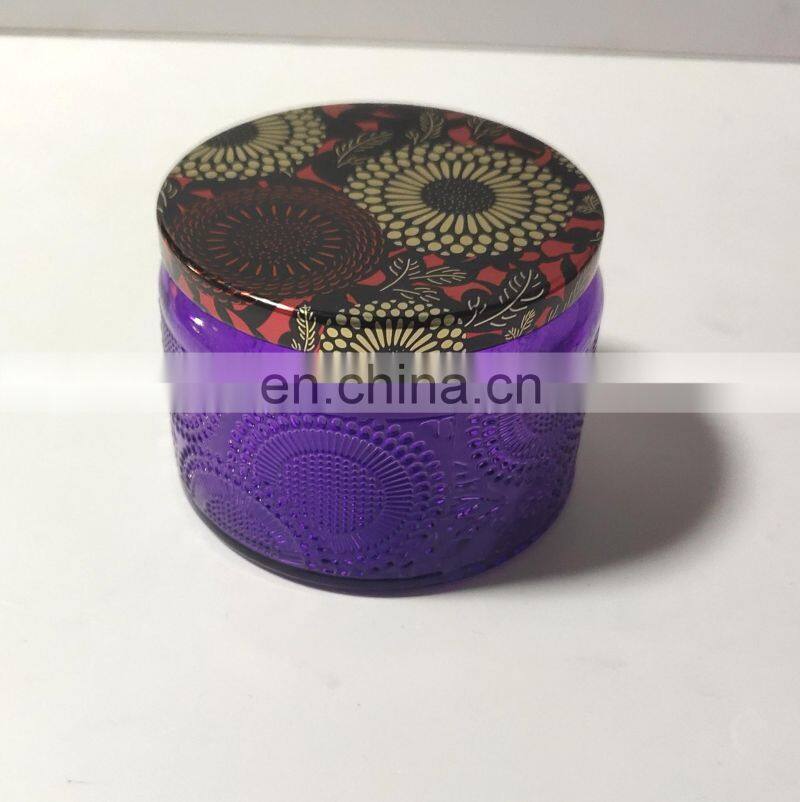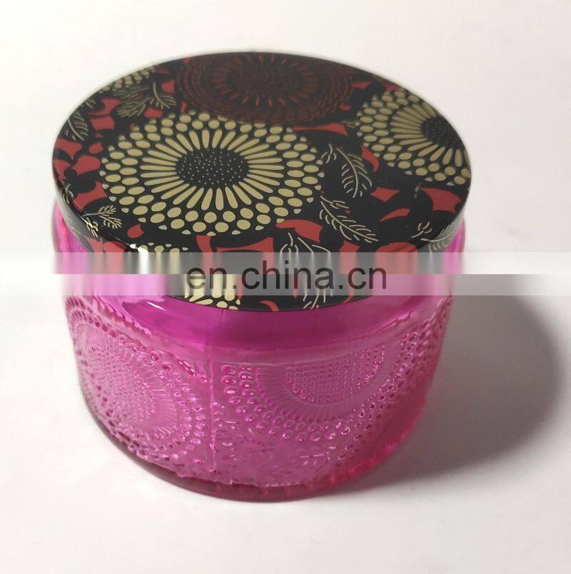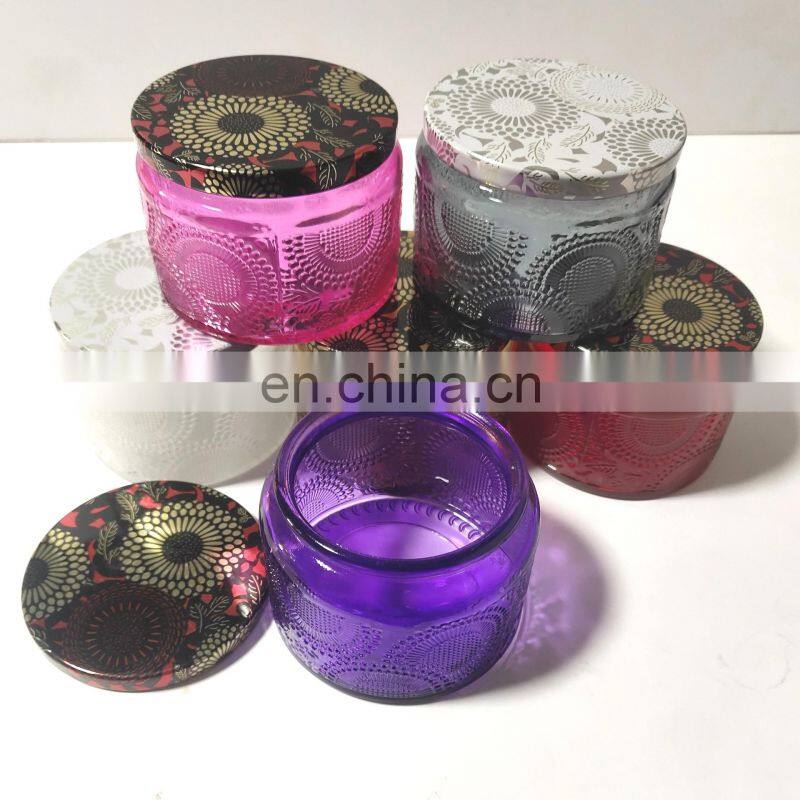 Fancy Luxury Multiple Colors Wax Container in Bluk Stock Candle Making Glass Embossed Jars With Lids