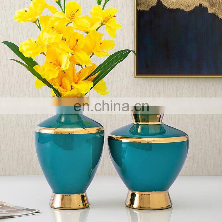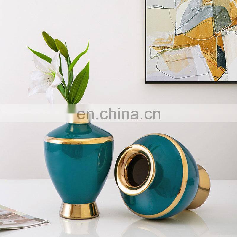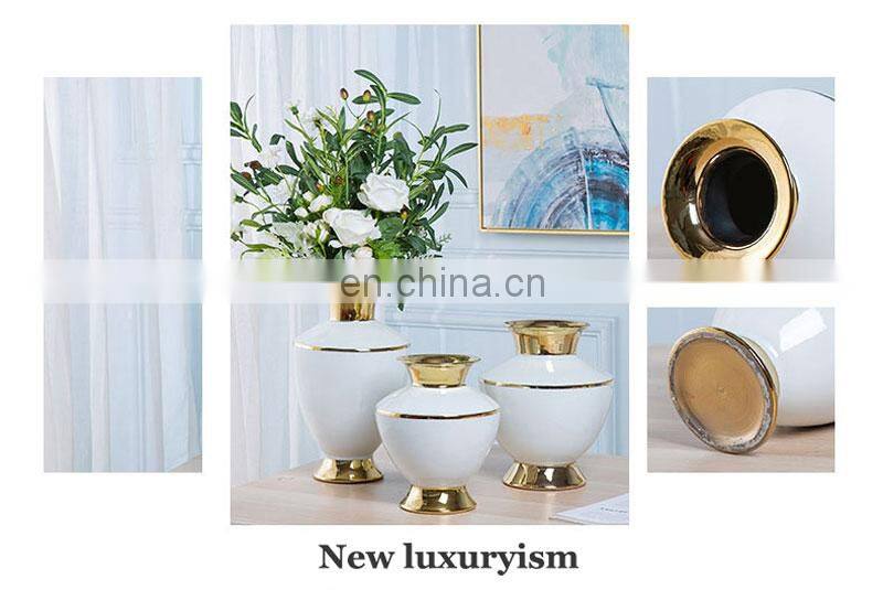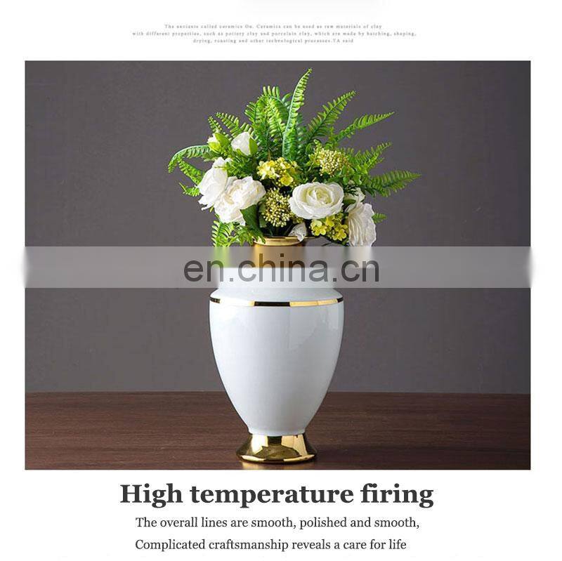 Modern Luxury Gold Circle White Ceramic Home Decoration Nordic Flower Vase