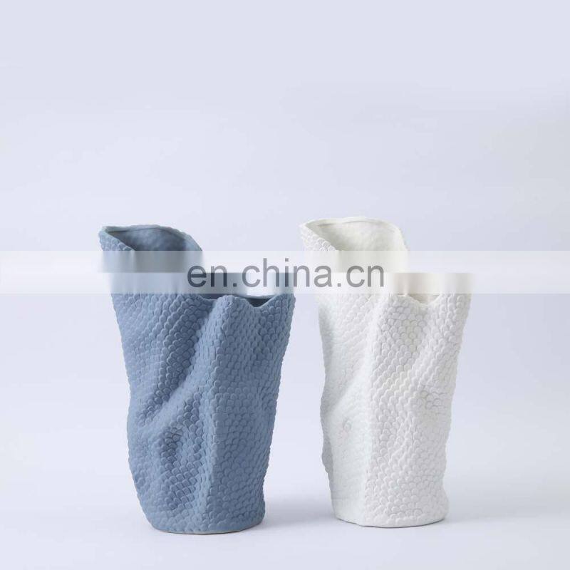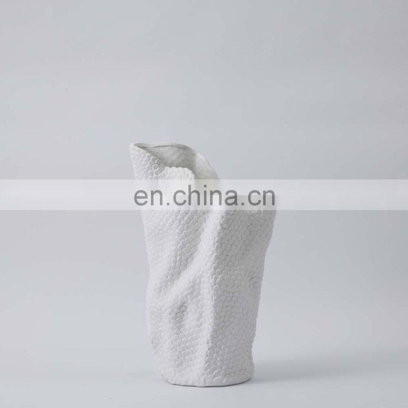 Wholesale Nordic Modern Creative Luxury Simple Folds White Ceramic Vases