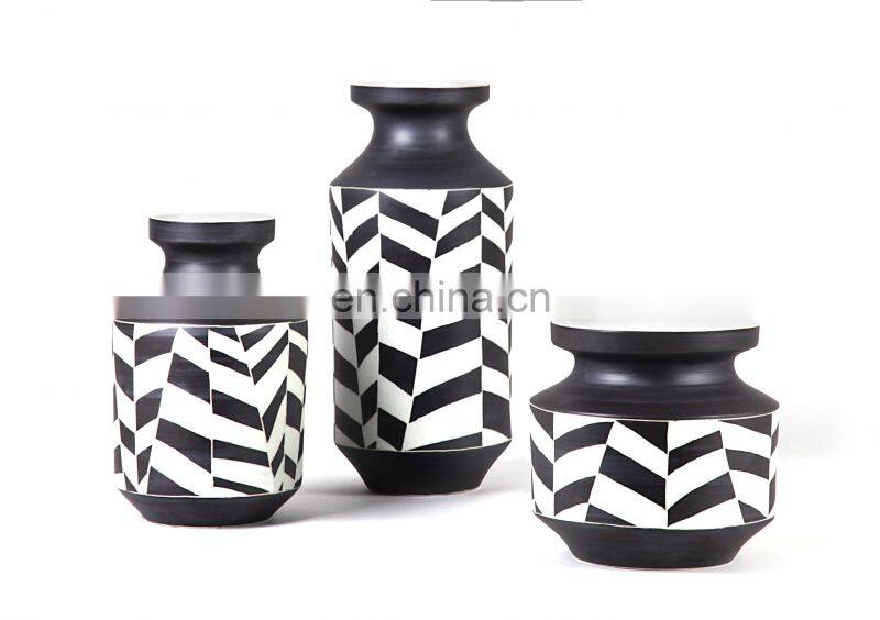 New Modern Design Simple Green Black White Color Ceramic Bud Vase Set