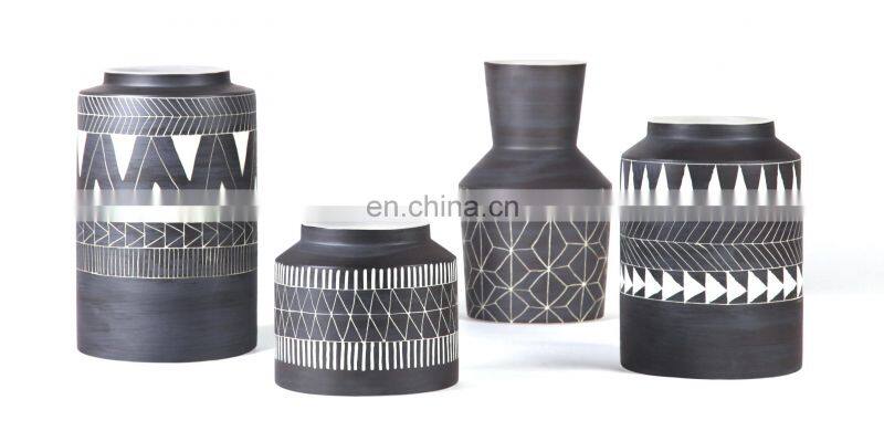 High Quality Handmade Embossed Creative Home Decor Craft Decorative Ceramic Vase With Resin