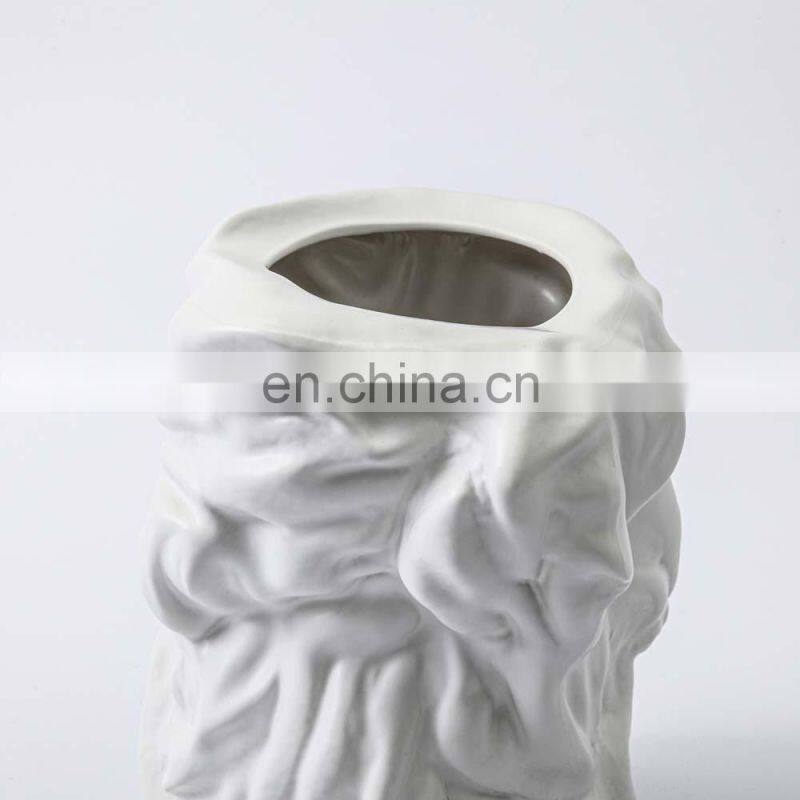 Wholesale Nordic Modern Creative Luxury Simple Folds White Ceramic Vases