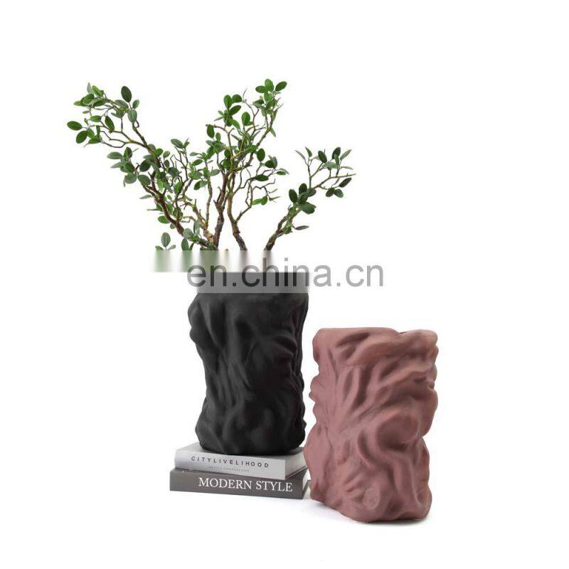 Modern Stone Texture Unique Shape Gradient Color Ceramic Vase