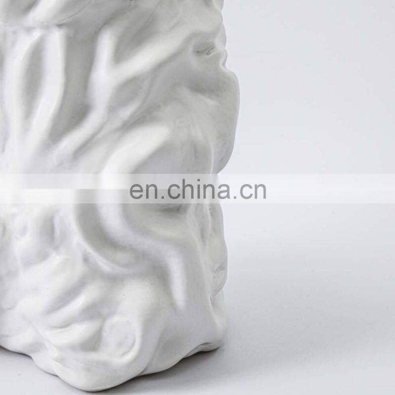 White Gold Painting Post-modern Human Body Part Art Ceramic Face Decoration Vase for Home