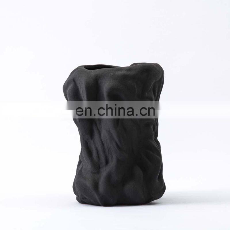 Indoor Decor Simple Customize Contemporary Knit Black Ceramic Vase