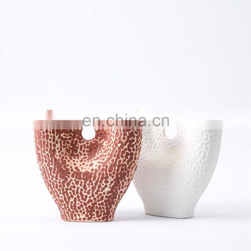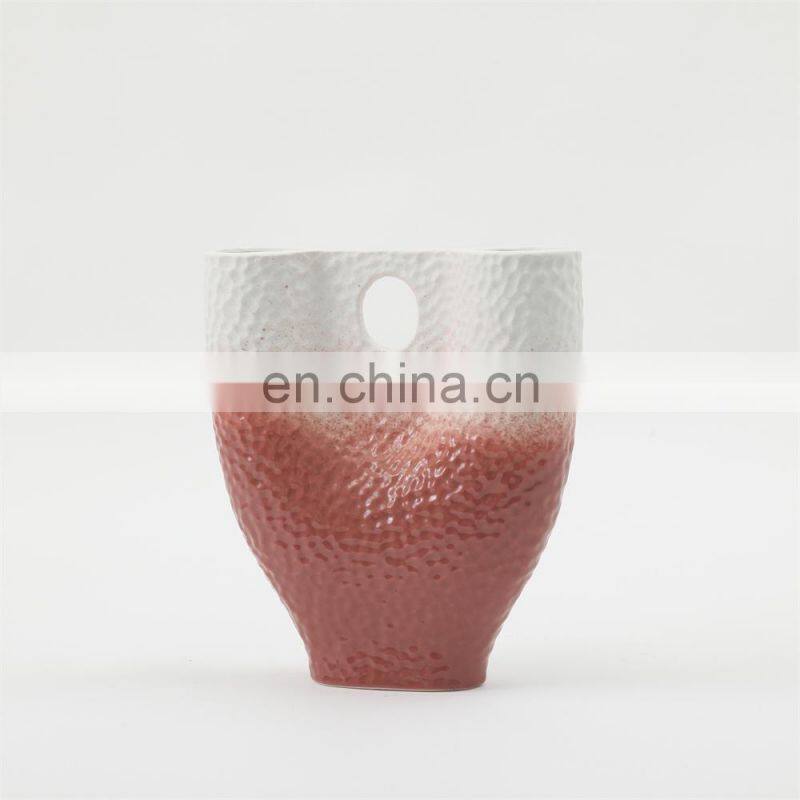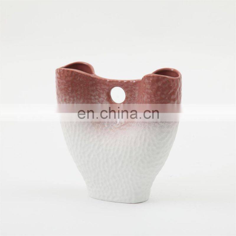 Hot Sale White Red u Shape Ceramic Living Room Decor Flower Vases