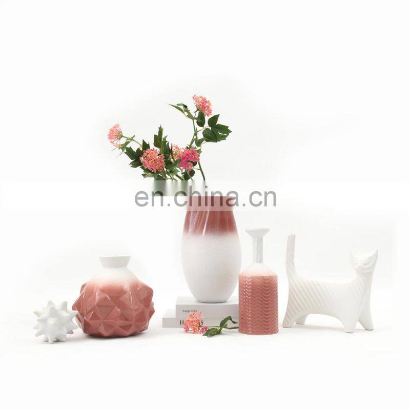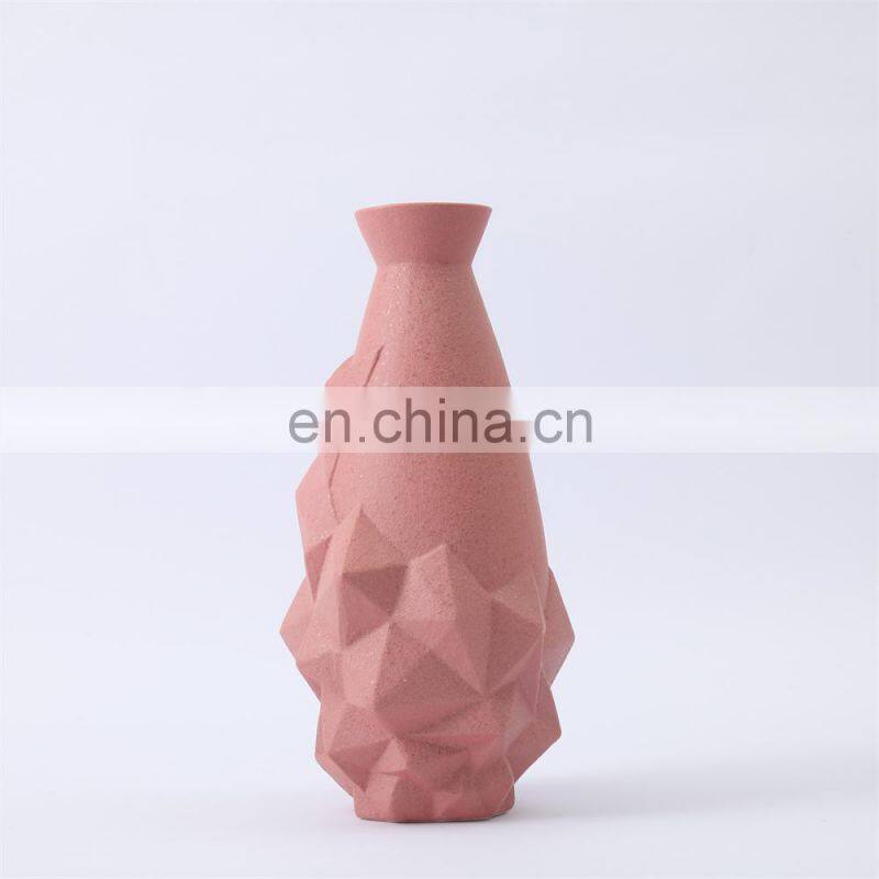 Modern Gradient Unique Diamond Shape Artificial Decoration Ceramic Flower Vase