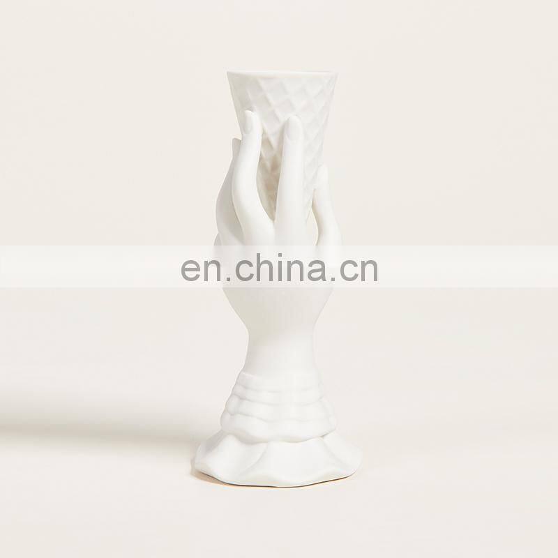 Ceramic Ice Cream Hand Flower White Office Table Decoration Nordic Ikebana Vase