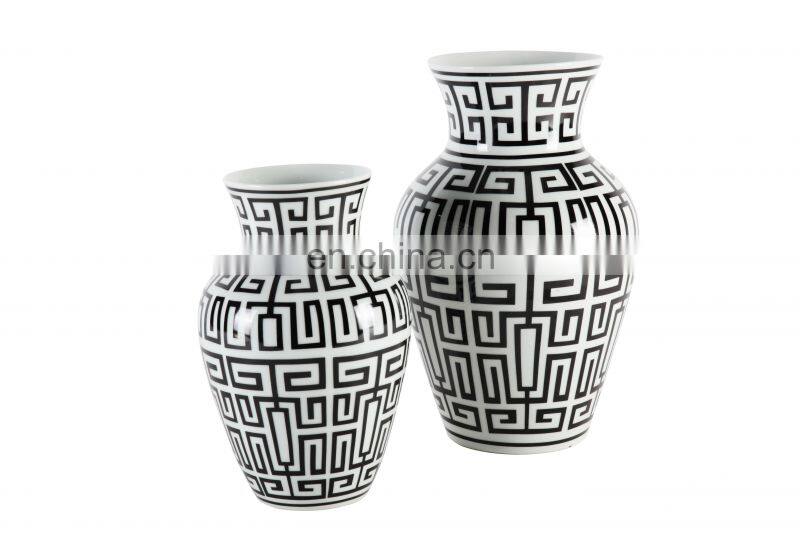 Traditional Geometric Luxury Home Decor Grey White Ceramic Tabletop Flower Vase for Table Decoration