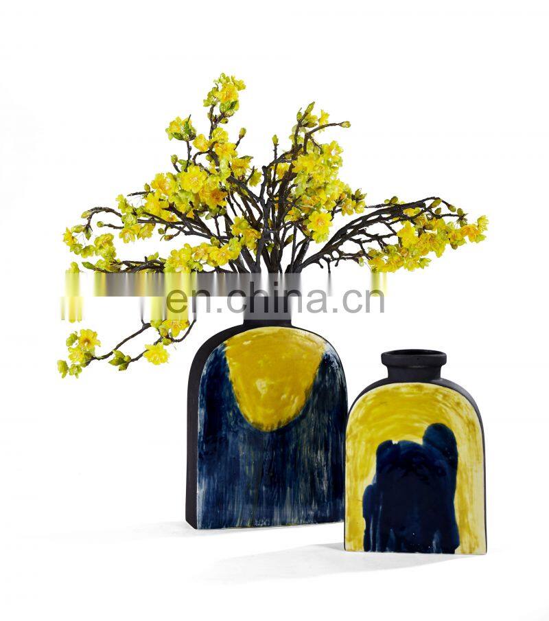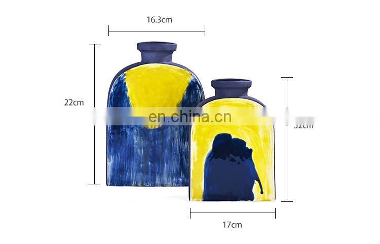 Nordic Creative Hand-Painted Modern Blue and Yellow Mix Color Ceramic Vase Table Porcelain Vase for Home Decoration