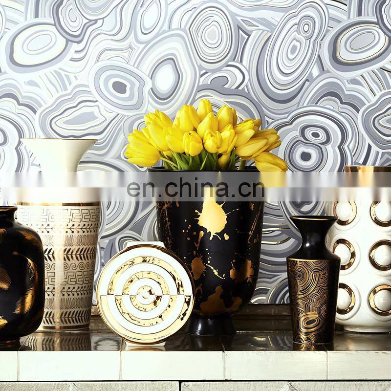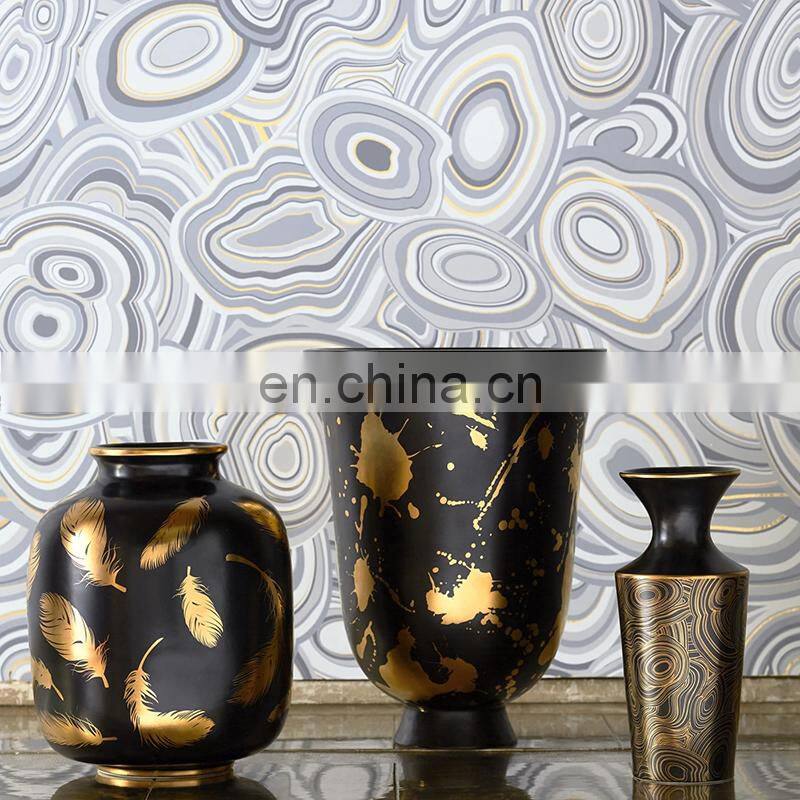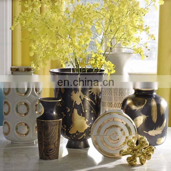 Modern Luxury Plated Painting Home Ceramic Decoration Back Gold Vase For Flower