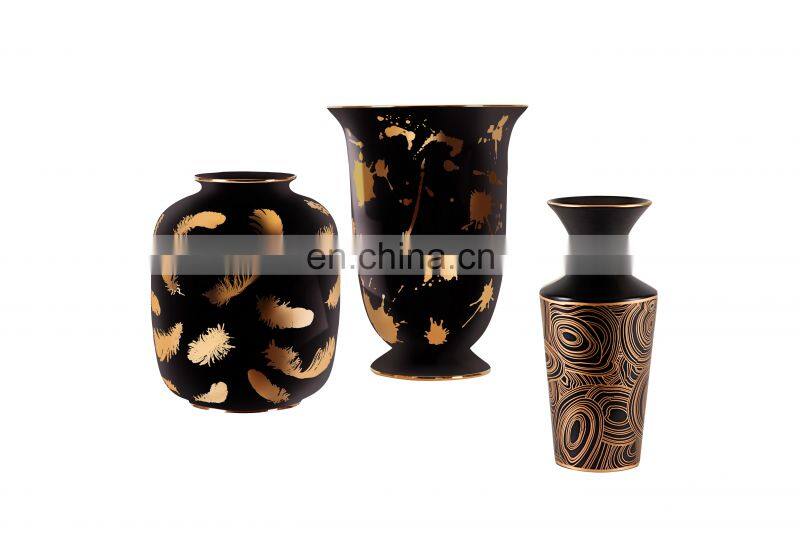 Home > Products > Ceramic Vase > Modern Luxury Plated Painting Home Ceramic Decoration Back Gold Vase For Flower