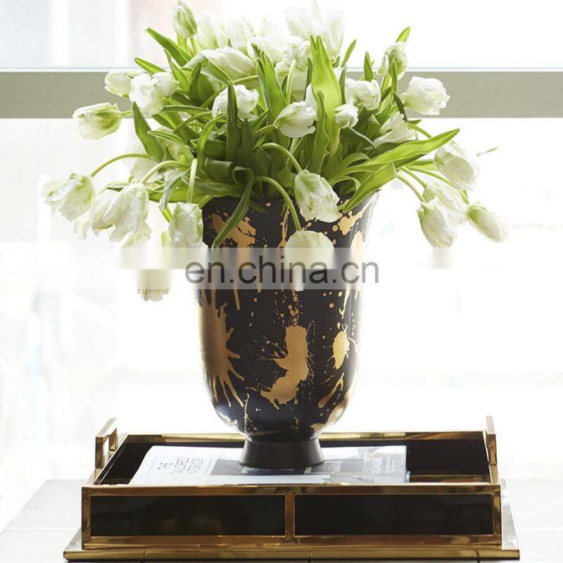 Modern Luxury Gold Plated Black Home Decor Vase for Flower