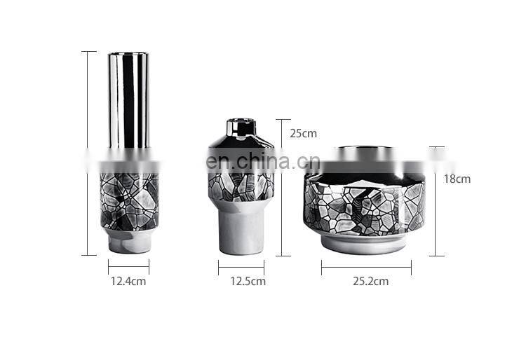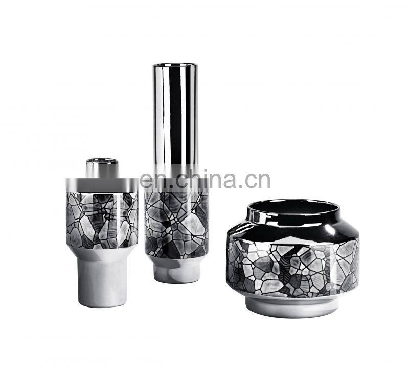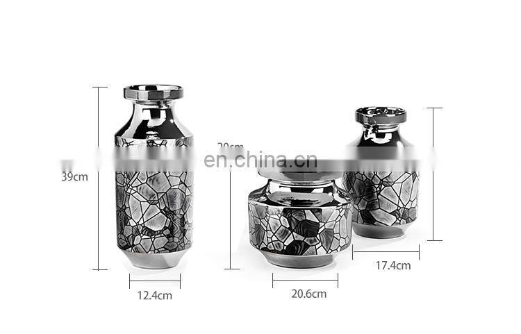 Decorative Silver Plated Marble Pattern Porcelain Vase High-end Ceramic Vase for Table Decoration