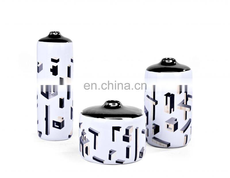 Nordic Modern Luxury Black Line and White Decal Decorative Pot Large Ceramic Vase Set for Home Decoration