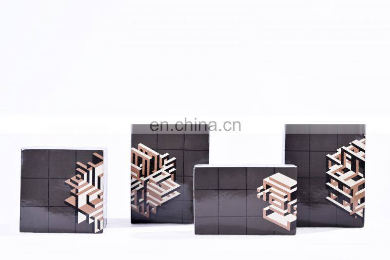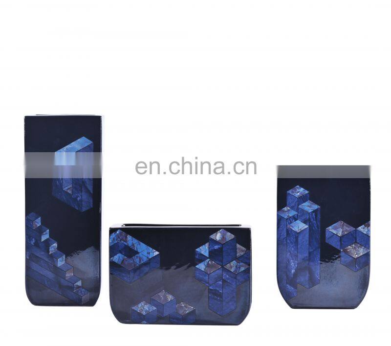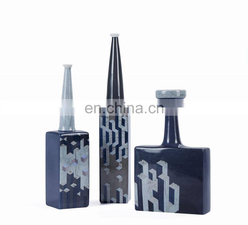 China Luxury Modern Tabletop Craft Blue And Yellow Square Decorative Ceramic Vase for Home Decor