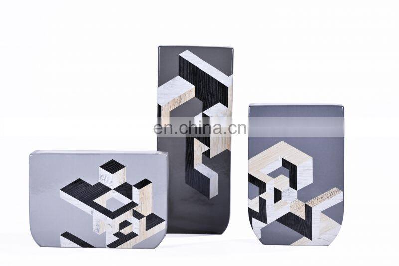Nordic Geometrical Pattern Decal Porcelain Luxury Modern Decorative Flower Ceramic Vase