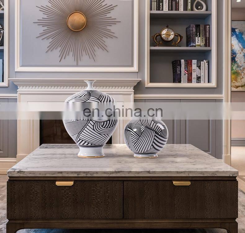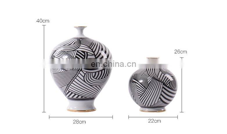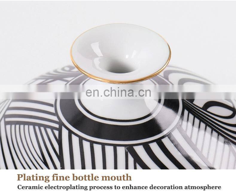 Luxury American Style Decal Decorative Flower Arrangement Black and White Ceramic Vase for Home Decor
