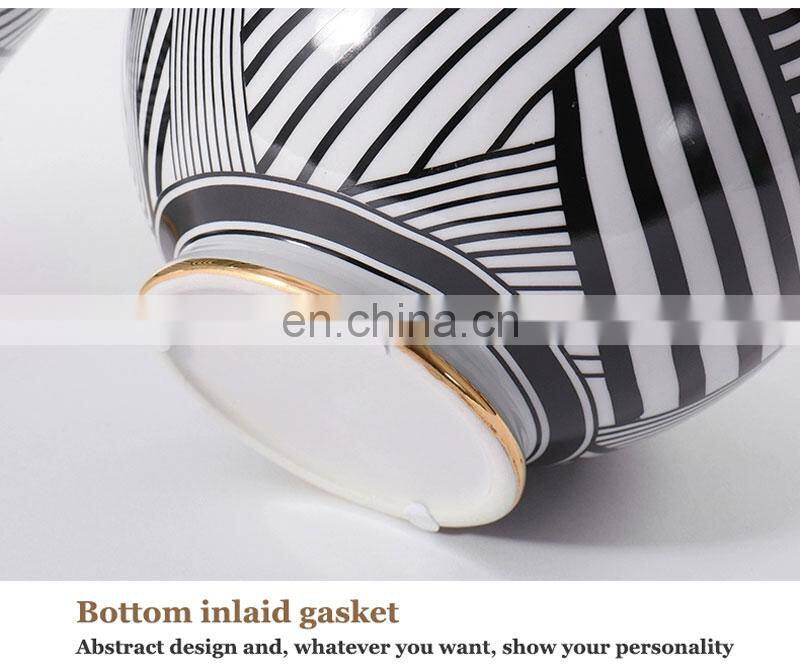 Big Belly Striped Nordic Modern Luxury Black Line White Tabletop Home Decoration Ceramic Vase