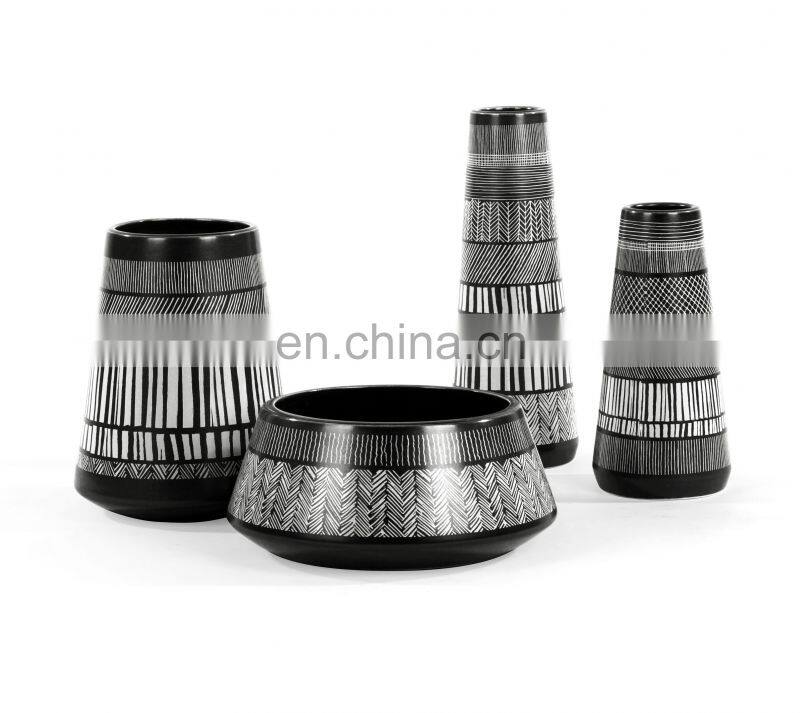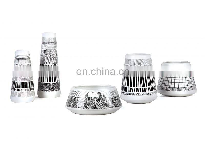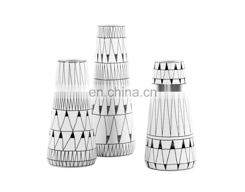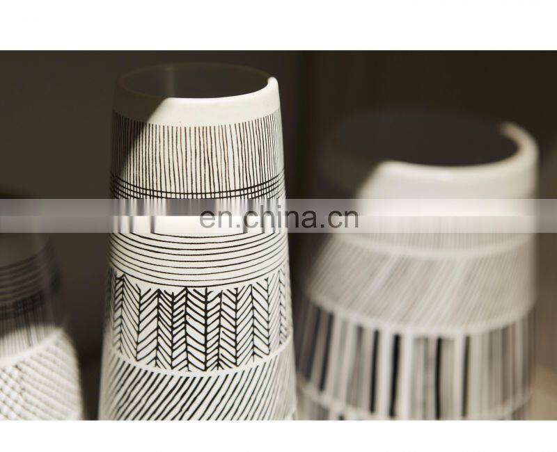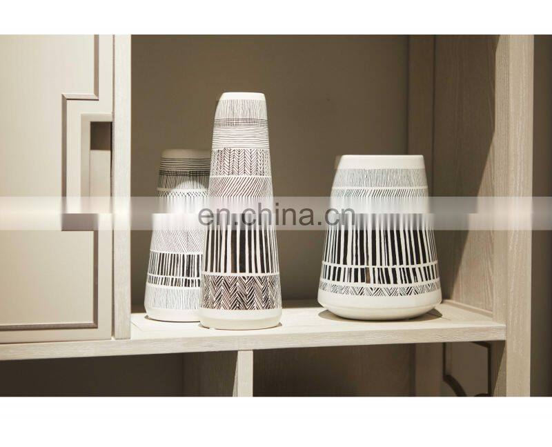 Home > Products > Ceramic Vase > Nordic Modern Luxury Black Line and White Decal Decorative Pot Large Ceramic Vase Set for Home Decoration