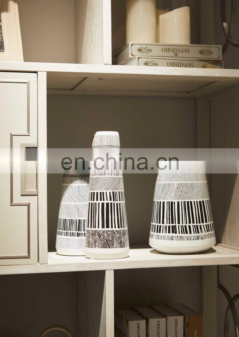 Nordic Modern Luxury Black Line and White Decal Decorative Pot Large Ceramic Vase Set for Home Decoration