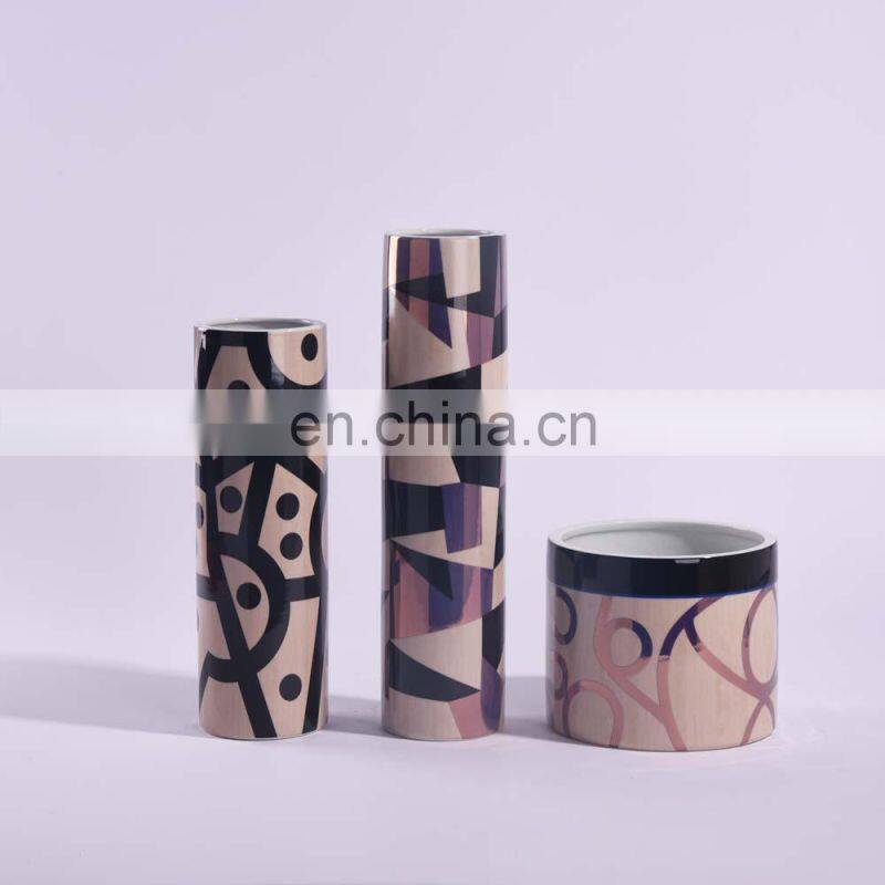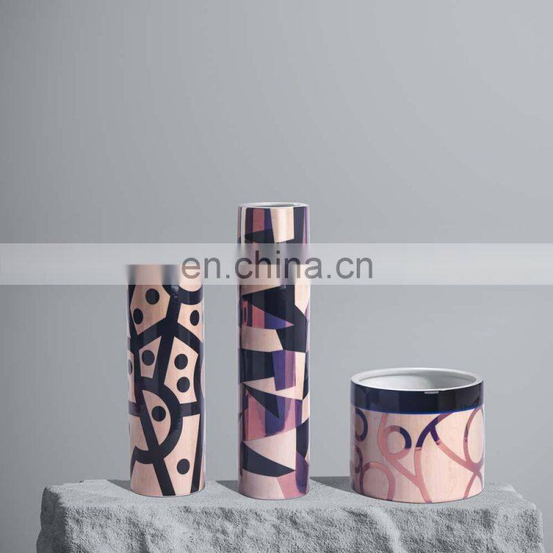 Creative Modern Fashion Decal Porcelain Vase Geometric Design Flower Ceramic For Home Decor