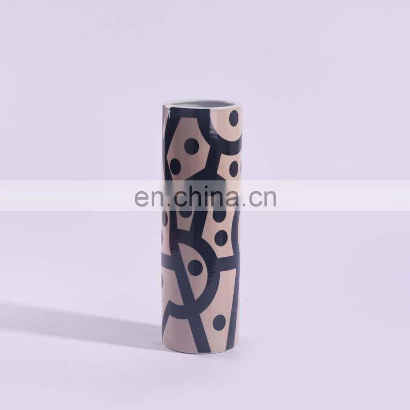 New Chinese Modern Geometric Pattern Ink Porcelain Vase Ceramic Vase for Home Decoration