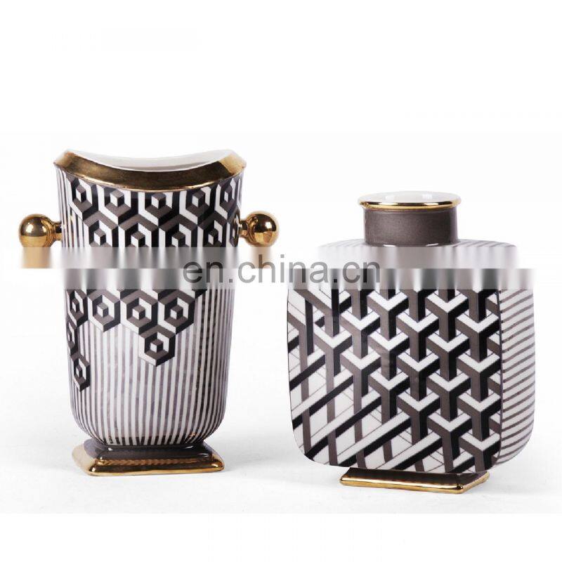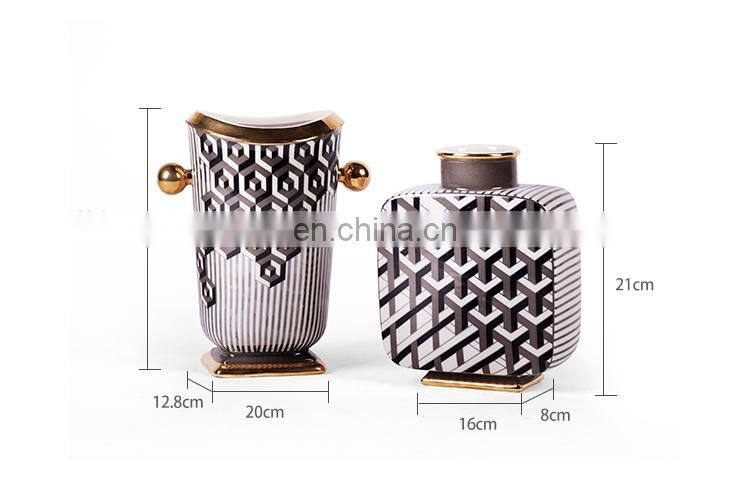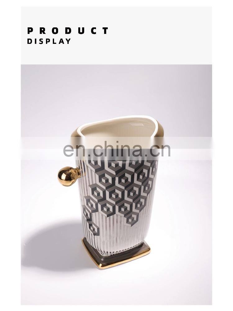 Creative Modern Fashion Decal Porcelain Vase Geometric Design Flower Ceramic For Home Decor