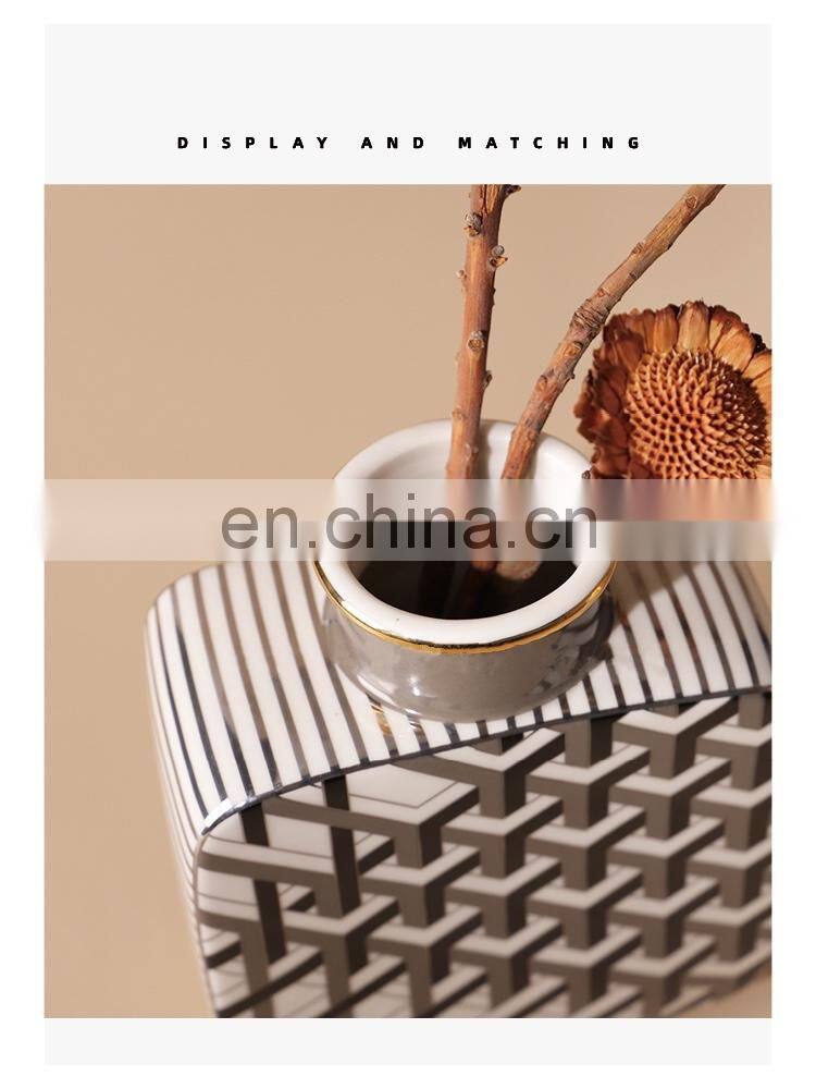 Geometric HandMade Modern Table Decoration Nordic Black White White Ceramic Stripe Vase