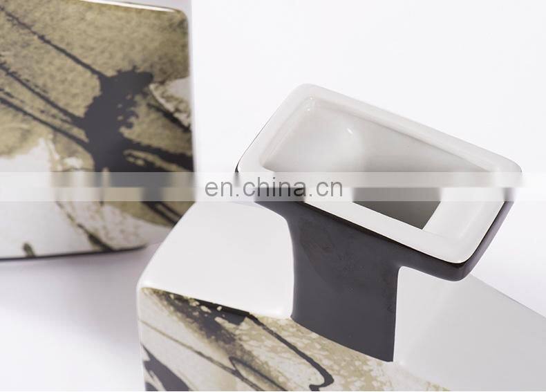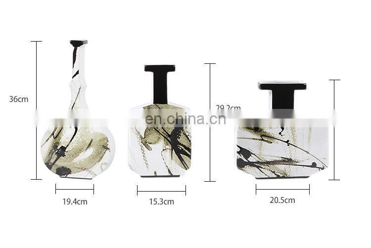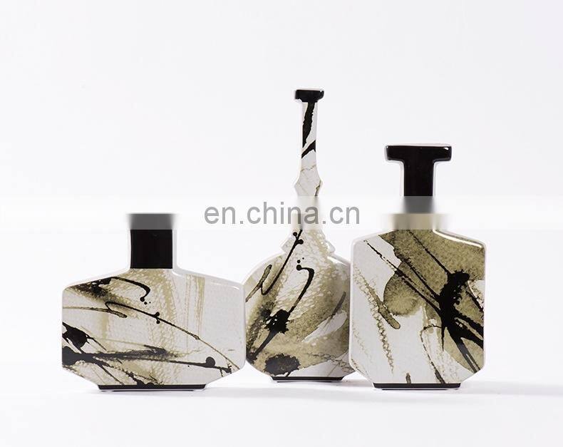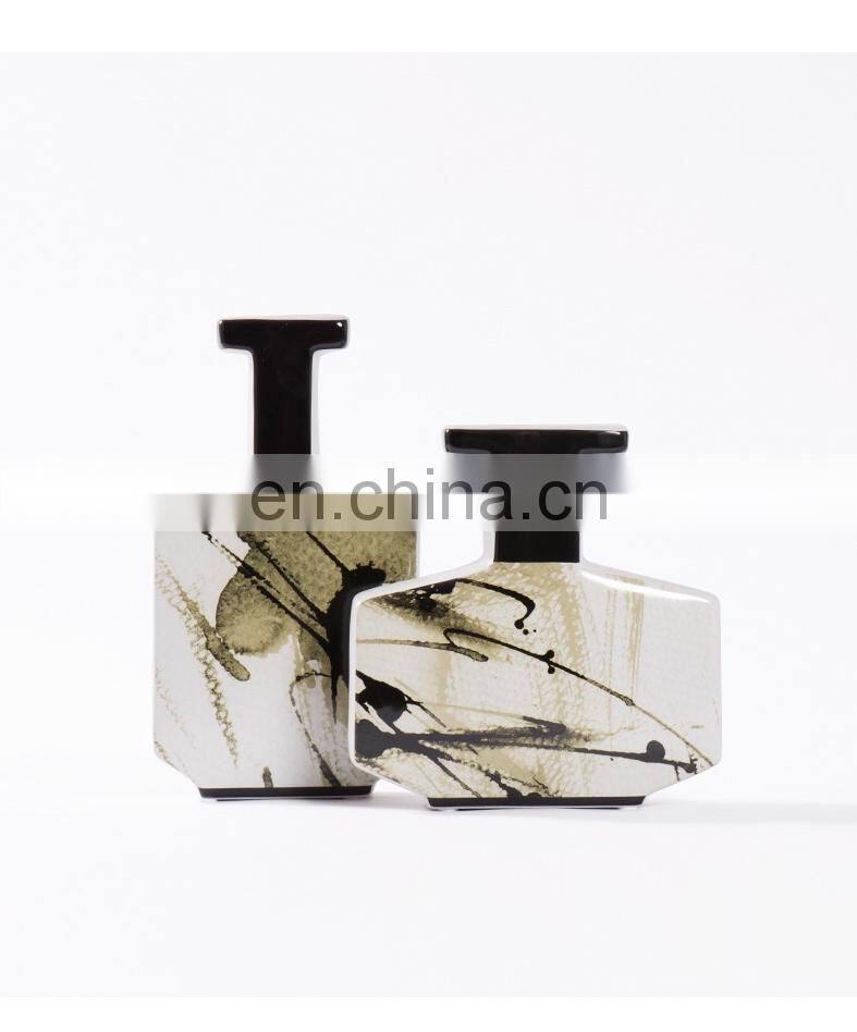 New Chinese Modern Geometric Pattern Ink Porcelain Vase Ceramic Vase for Home Decoration