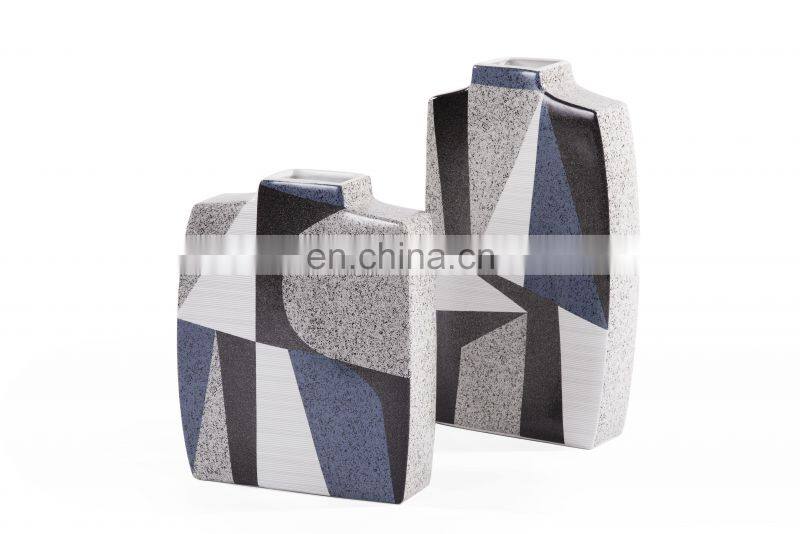 New Chinese Modern Geometric Pattern Ink Porcelain Vase Ceramic Vase for Home Decoration