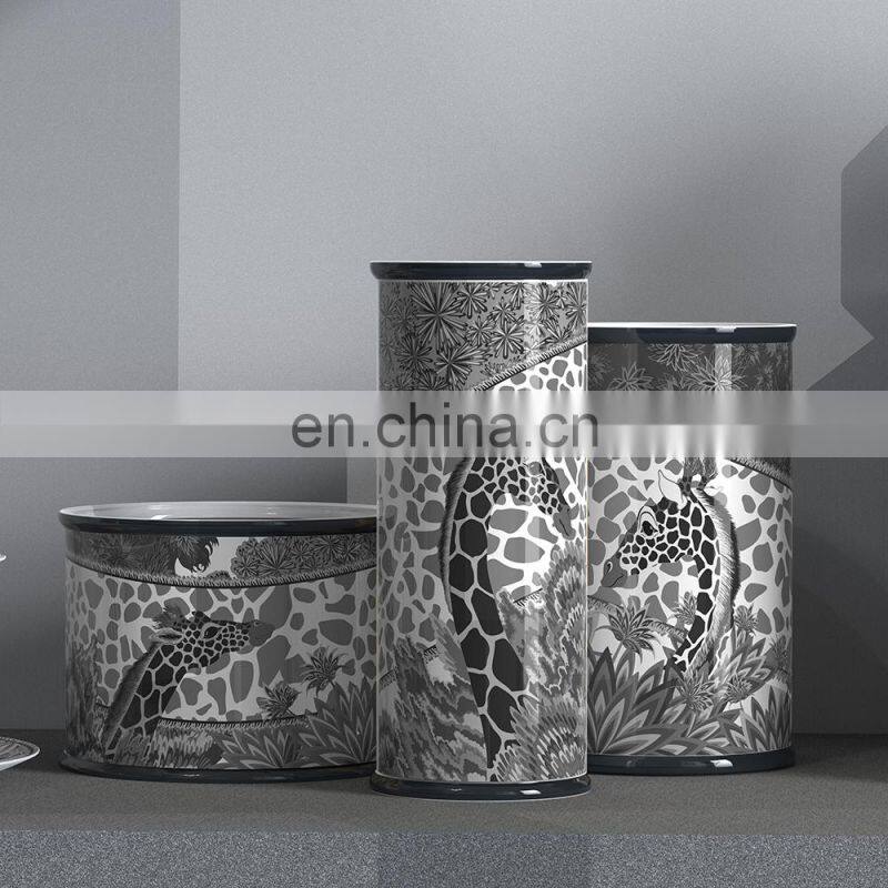 Home > Products > Ceramic Vase > Grey Yellow Brown 3 Color Giraffe Decal Luxury Modern Vase For Room Decoration