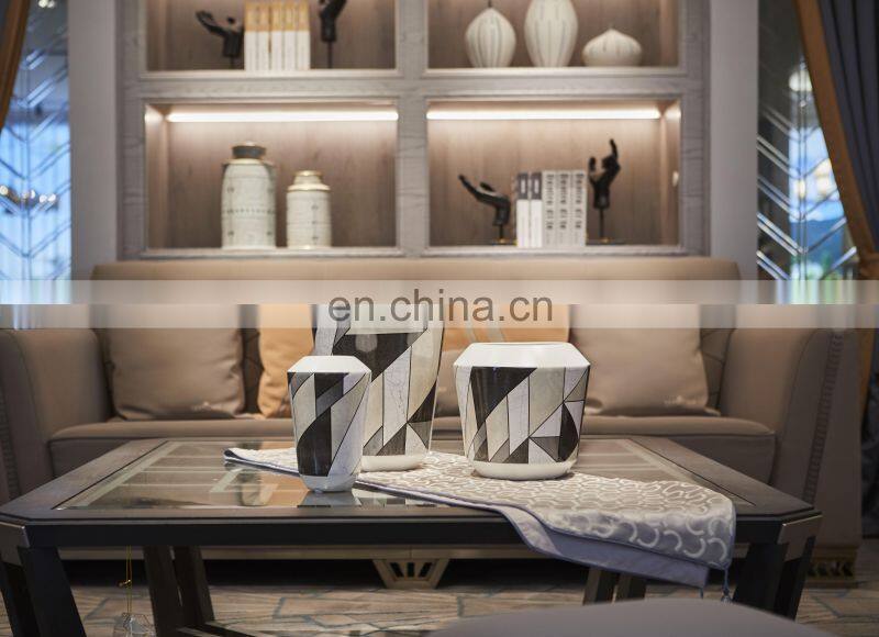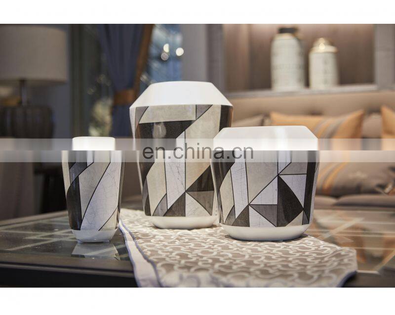 New Chinese Modern Geometric Pattern Ink Porcelain Vase Ceramic Vase for Home Decoration
